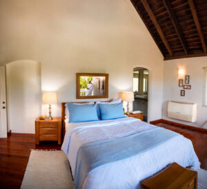 Villa Bimiti’s Primary Bedroom is named after the rarest hummingbird in Tobago, the White Tailed Sabrewing. Located on the upper floor, it is a room created on a grand scale. It has a California King bed with a sleep-inducing memory foam mattress. Additionally, there is a bed to accommodate a child accompanying their parents.